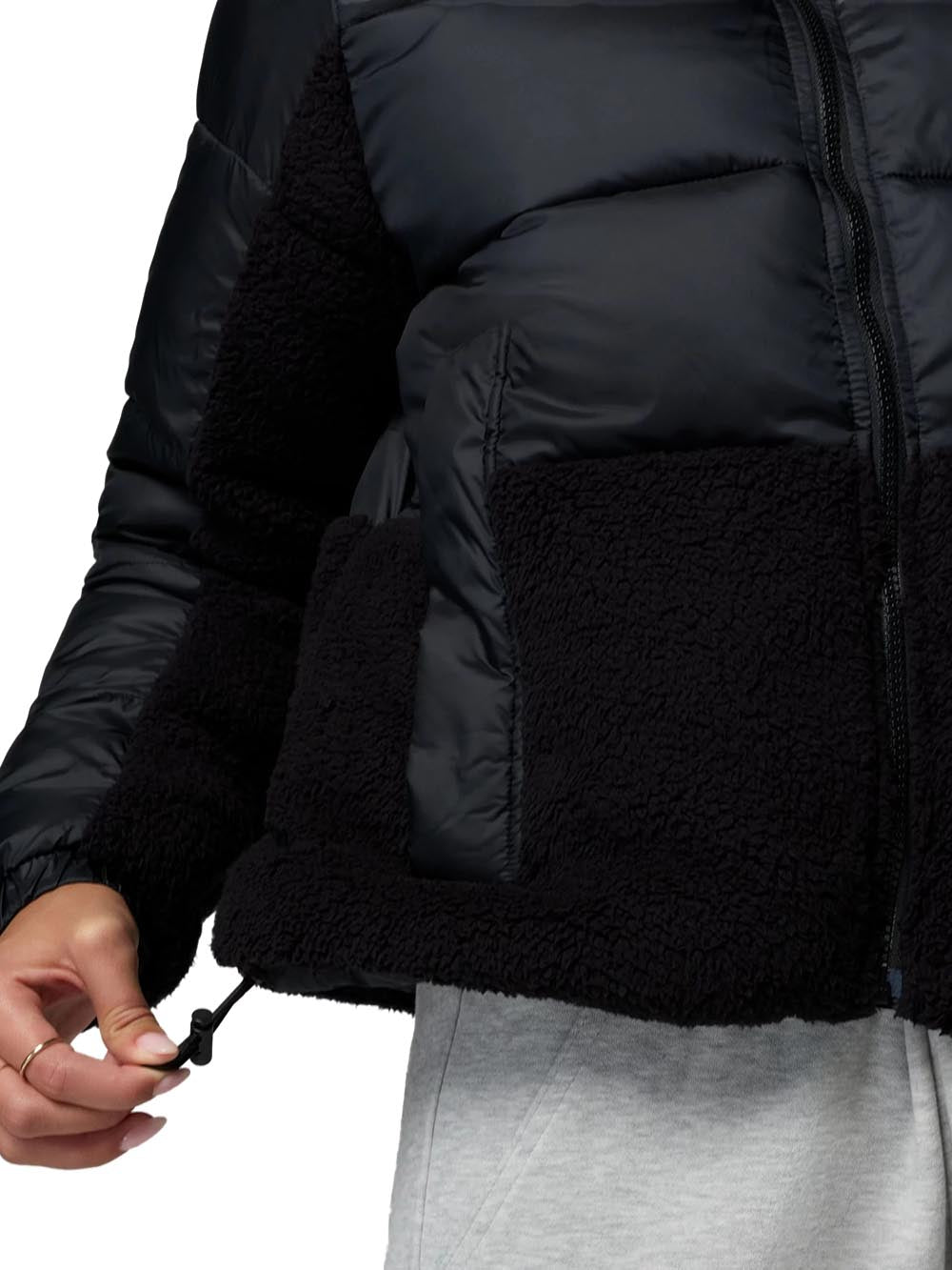- Design ibrido con silhouette trapuntata che combina tessuto impermeabile e pannelli in morbido pile Sherpa per un comfort superiore.